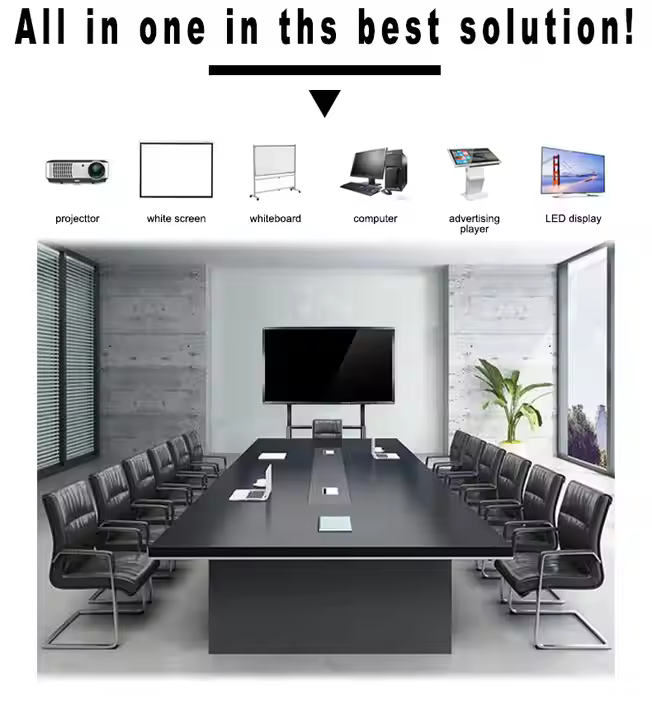 Sukurtas tiek su funkcionalumu, tiek su estetika, mūsų interaktyvus susitikimų ekranas pasižymi plonu kūno ir elegantiška perspektyva, pridedant rafinuotumą bet kurioje posėdžių salėje. Nesvarbu, ar pritvirtintas prie sienos, ar ant grindų, naudojant mobilųjį laikiklį, jis siūlo universalumą ir patogumą, todėl lengva prisitaikyti prie bet kokios erdvės ar sąrankos.