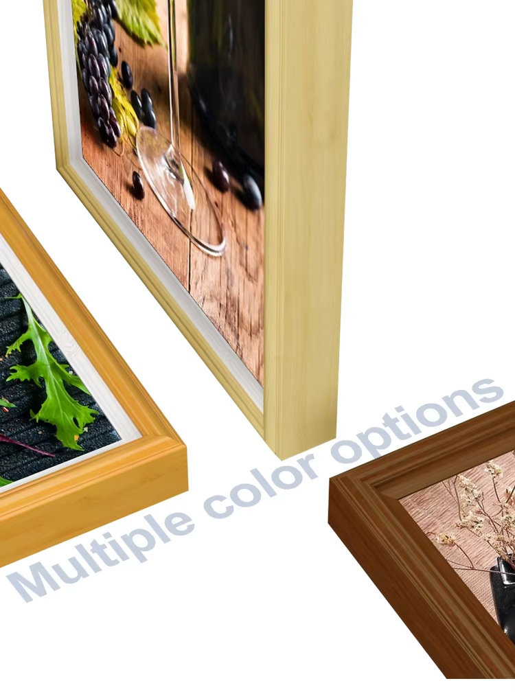8. Kiek šio NFT ekrano rėmo spalvų? Medinės rėmo spalvos: juodos, baltos, beržo, raudonmedžio, pasirinktinės spalvos.
