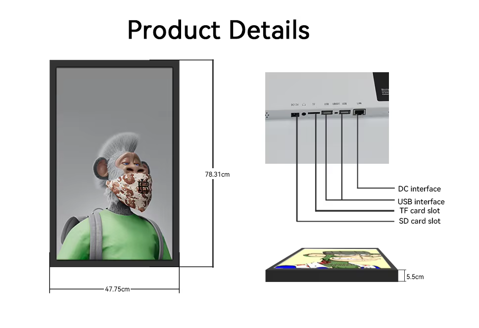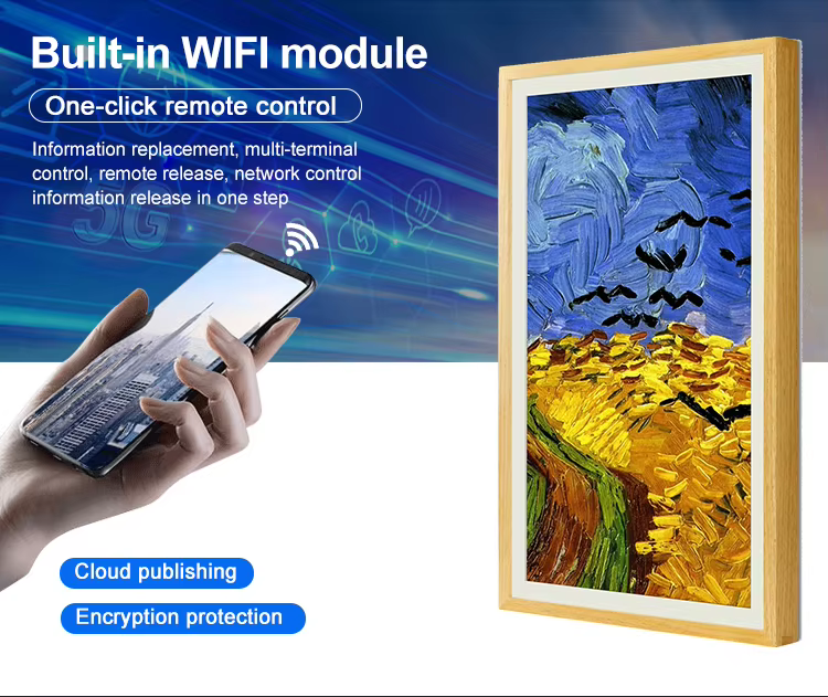 Naujas „Android WiFi“ plonas sieninis montavimo ekranas „Kiosk“ skaitmeninis meno rėmas NFT 21.5 32 43 55 65 75 85 100inch 4KDigital Photo Rėmo filmo plakatas